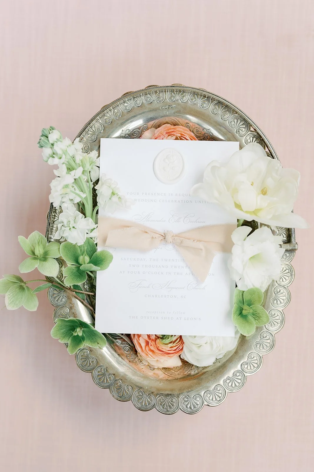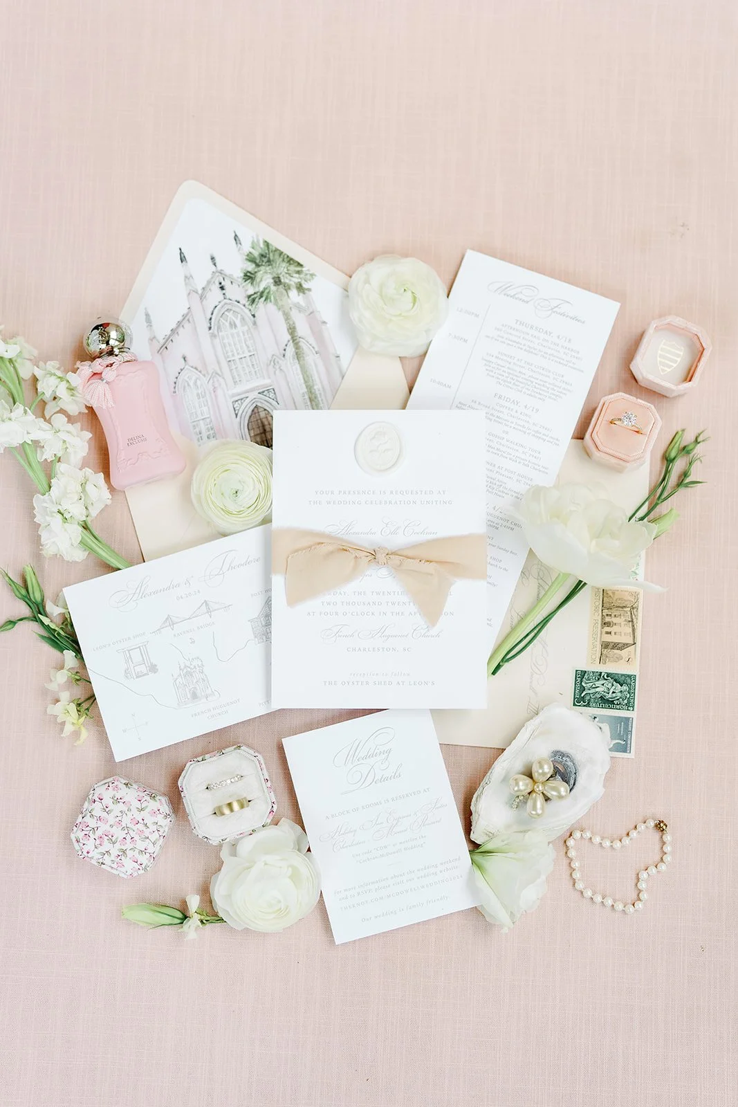 Southern elegance meets bespoke craftsmanship in this Charleston invitation suite