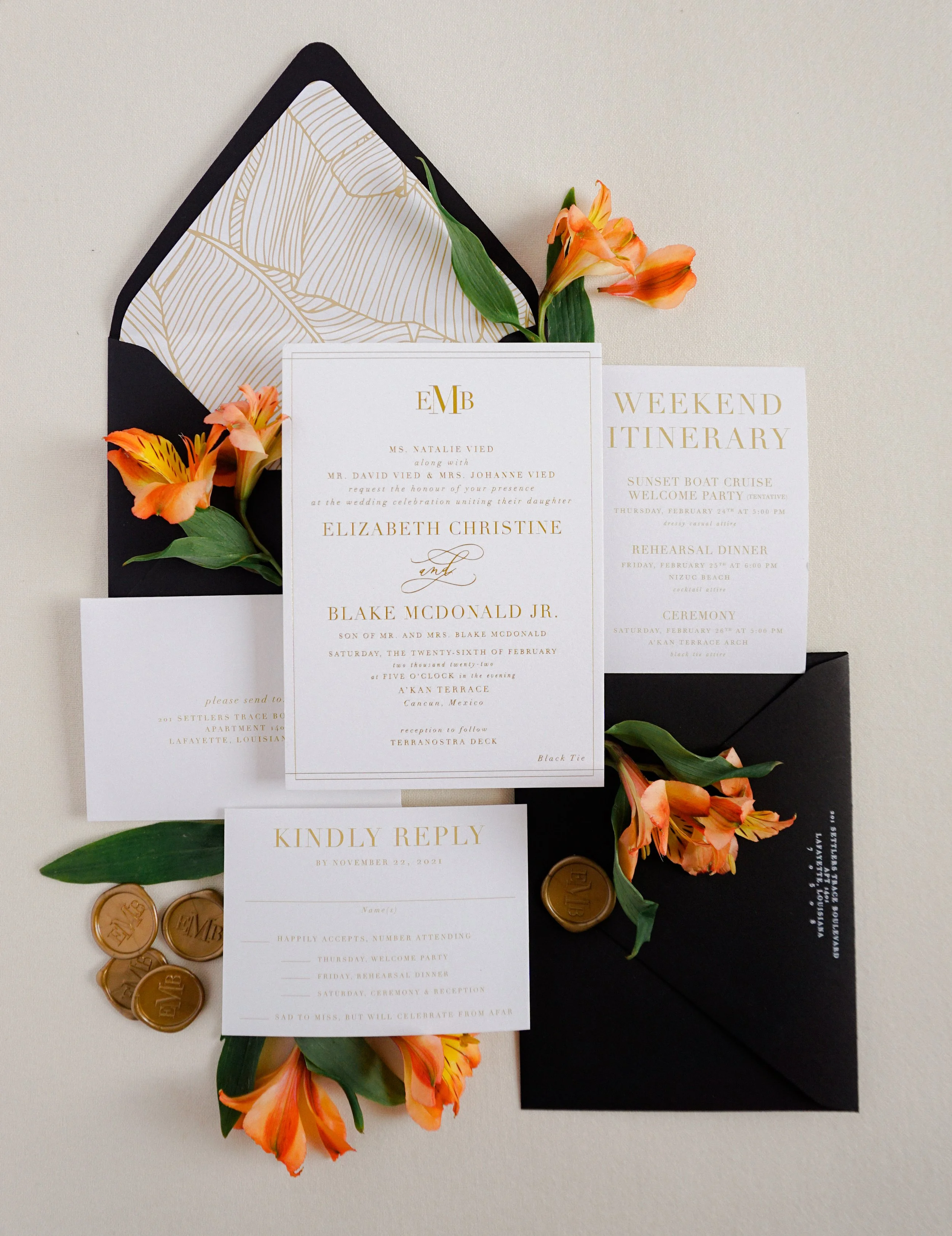 Want to have your invitation suite look exactly like the one featured? Check off these items when inquiring: